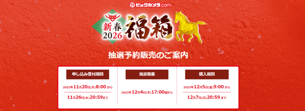 今年もビックカメラの新春福箱の抽選が以下の日程で行われます。