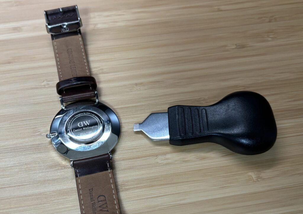 まず、ダニエルウェリントンの時計を逆さにして、裏蓋を見つけます。オープナーを使って、時計の裏蓋を慎重に開けましょう。
