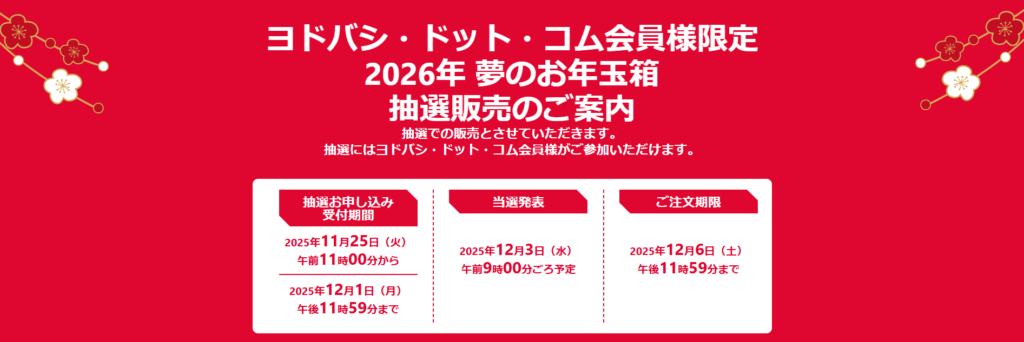 2026年はヨドバシメラの福袋の抽選が以下の日程で行われます。